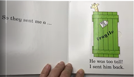 You can make this experience look better by making sure you have a good internet connection, your video image is clear and well-lit and your mic picks up sound well. (Check out this tutorial on looking and sounding good on Zoom.) You can also think about choosing books that are small and light so they’re easy to hold, not too glossy (the light reflects off of them), and have good high contrast pictures with large text that’s easy to see on the screen. Check out this video for examples so you can see why this matters.